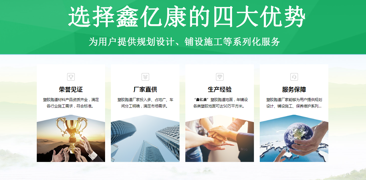 鑫億康(山東)體育產業發展有限公司是業內一家塑膠跑道材料的生產企業。公司經營范圍:塑膠跑道,全塑型塑膠跑道,混合型塑膠跑道,透氣型塑膠跑道,EPDM塑膠跑道廠家銷售及鋪設;體育用品及器材銷售、安裝。  公司擁有專業的生產及研發團隊和專業的銷售管理精英團隊,一直致力于產品的開發和業務的拓展,產品暢銷全國各個省市,遠銷東南亞地區、歐美等國家。卓越的品質,周到細致的服務,使我們取得為眾多生活小區、市政單位、物業公司、學校、工廠等單位提供優質產品的機會,產品色澤鮮艷,美觀大方,品種齊全,材質多樣化,并贏得了良好口碑,多次獲得好評和表彰。  企業性質:涉足建筑業,具有多項資質證書,是集研發、項目管理、設計、檢測、加固施工、咨詢服務于一體的綜合性科技型企業,通過為業主提供品質卓越、專業誠信的服務,來贏得信譽并滿足社會要求。  服務內容:長期致力于建筑領域中發展,從項目的規劃到操作運行,為業主提供從工程項目管理、工程結構設計、房屋質量檢測、幕墻檢測、司法鑒定、抗震鑒定、工程檢測、工程測繪、特種工程加固、綜合改造加固、工程監理等系統而專業化的服務,包括項目生命周期中的每一個步驟。  管理平臺:致力于管理的規范化和精細化,為業主提供性價比更高的服務。公司按照國際ISO9000質量標準和國家MA計量標準實事工程...
